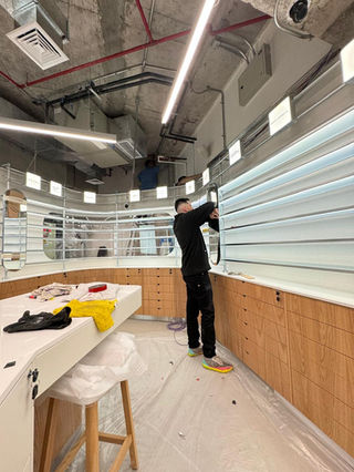 Heladería yogurt griego ubicada en Providencia, Santiago de Chile. Fabricamos el mesón de atención, mueble de contra barra, repisas, mesas, sillas, terrazas, letreros y señalética, trabajando principalmente metal con pintura electrostática y cubiertas en acero inoxidable AISI 304. Cada elemento fue pensado para resistir alto flujo, facilitar la limpieza y mantenerse en el tiempo.