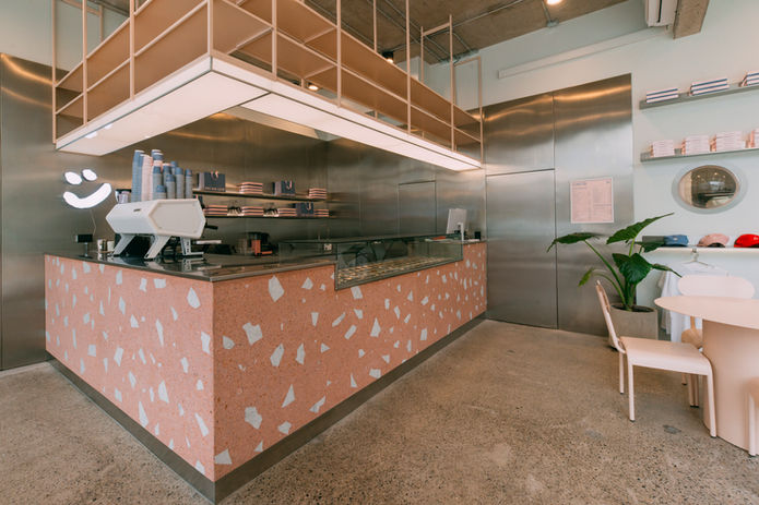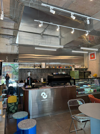 Cafetería de especialidad y galletería. Ubicada en Concón. Fabricamos el mobiliario de metal y de acero inoxidable.